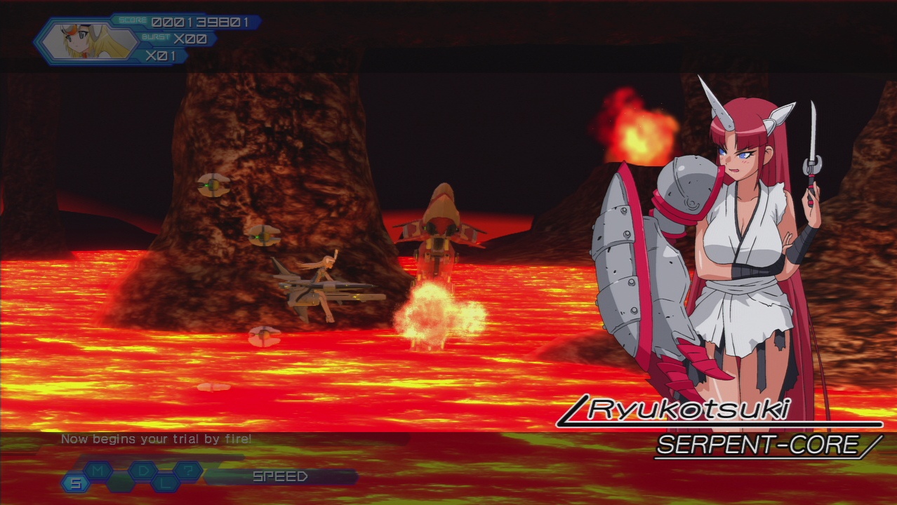 Ryukotsuki is a girlie version of the demonic dragon-skeleton boss of Getsu Fuuma Den. She commands a snake-like vessel called the Serpent Core.
