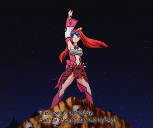 When you first face Dark Force, she is far too powerful to be taken down, considering she wipes out a huge chunk of the Gradian fleet with a single missile blast. In what is probably a reference to Gradius V, the only way to beat her is to travel back through time to defeat her when she’s still a child. She pilots the Black Viper, which first made an appearance in Sexy Parodius as the second player version of the Shooting Star. The artwork gallery also shows that part of her ship is inspired by the winged pod from Quarth.
