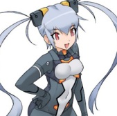 Arnval is from Busou Shinki, a line of figures from Konami that also happens to be about mecha shoujo. Since Emon 5 is the only character missing from this game, she takes up his arsenal.