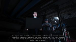 There’s also a face to the corporate villainy for the first time with the introduction of Jeremy Blaire, a sadistic, sociopathic hate sink who doesn’t even have the excuse of being certifiably insane. Several of the pursuers from the original game also drop in to say hi, before trying to stab you/rip your head off. You even explore some of the same areas as Miles, only you enter and exit via different routes, since you traversed them at different times. This never feels self-indulgent, or like Whistleblower is recycling content, but a really neat way of recontextualizing environments that you’ve already seen, and besides, while the developers certainly put the ‘Massive’ in Mount Massive Asylum, it only makes sense that Miles and Waylon would cover some of the same ground.