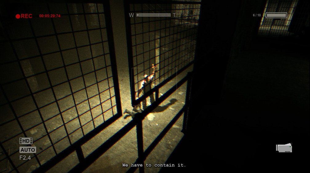 With all of this unapologetic gore, assault, and general nastiness, it’s clear that Outlast is trying to replicate the feel of a particularly violent B-movie from the early 80s; there’s even an explicit Evil Dead 2 reference thrown in, and the developers have cited several found-footage horror films as influences, in particular the Spanish film REC, and its American remake Quarantine. Because of this, it feels more like an intentional homage to the grindhouse-era of films rather than anything actually exploitative, although this doesn’t make its portrayal of the mentally ill as violently insane psychopaths any more tactful.