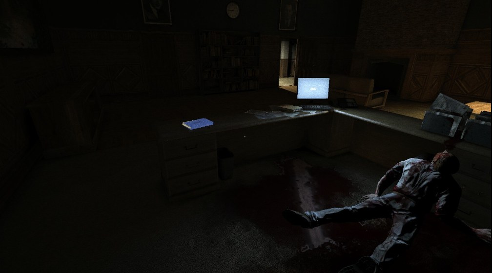 A slower-paced game might take the time to gradually increase the uneasiness of the player by dropping a few sparse hints that something is amiss, letting their imagination run wild until a dramatic reveal. Outlast is not this game, and within three minutes of entering the asylum, Miles has already discovered a library full of freshly-killed staff members and decapitated heads, one of Murkoff’s private military contractors who has been impaled upright on an iron pole and remains alive just long enough to tell Miles that the patients have all escaped, and he needs to “get the f*** out of this terrible place” before dying, and met a hulking ogre-like man who calls him “little pig” before throwing him through a first-floor window and down to ground-floor reception. Having definitively confirmed using his sharp journalistic insight that something is, in fact, wrong, Miles’ primary goal quickly changes from uncovering the asylum’s secrets to getting the hell out of there; an objective which he finds repeatedly thwarted by fate, bad luck, and the patients themselves, referred to a ‘Variants’.