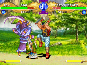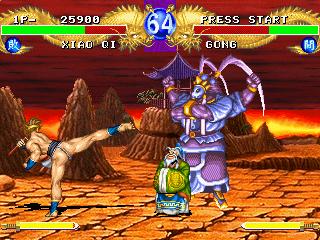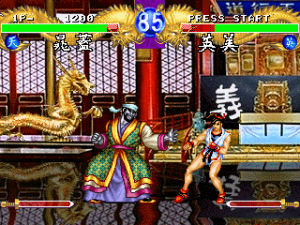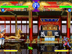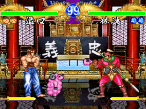 Outlaws of the Lost Dynasty‘s rather boring character roster undoubtedly alienated those who didn’t already have a thing for Chinese folklore. The sprites are merely average, the backgrounds are pretty dull, and the music, outside of a few inspired tunes, is largely forgettable. Its mediocre home ports didn’t exactly do it justice, either. Although the original arcade game was designed for Sega’s ST-V Titan, the Japanese Saturn release is a complete and total disgrace. Aside from the frequent load times, the gameplay is extraordinarily sluggish and choppy, like the game is using permanent and erratic frame skipping. Keep in mind that this game was released before the RAM cart. It’s completely and totally unplayable, but was fixed for the American Saturn and Japanese PlayStation releases. These versions still have some issues – choppy scaling, load times, and frequent slowdown with some of the larger characters, especially with Gong – but at least it’s not a total mess. Strangely, the Japanese versions offer “Original” and “Special” modes, with the “Original Mode” being just like the arcade, and “Special” adding some extra moves. The American version doesn’t give you the option and just defaults to “Special”. Makoto Mizoguchi, on loan from the Fighter’s History series, is also hidden in the PS1 port.