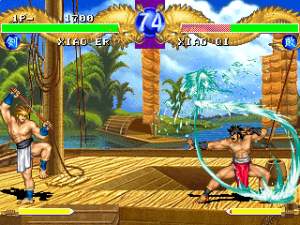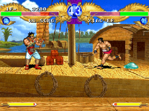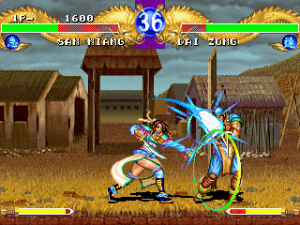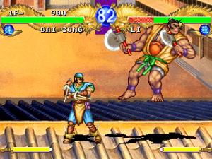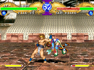 Outlaws of the Lost Dynasty also implements a cool juggle system which was pretty innovative for back in 1995. Certain standard and special attacks will cause your foe to spin in the air, bounce off of the ground, or slam into a wall. If you’re fast, you can follow up and continue the combo, which is a prototype to the Air Combos / Aerial Raves found in the Capcom Vs. games.