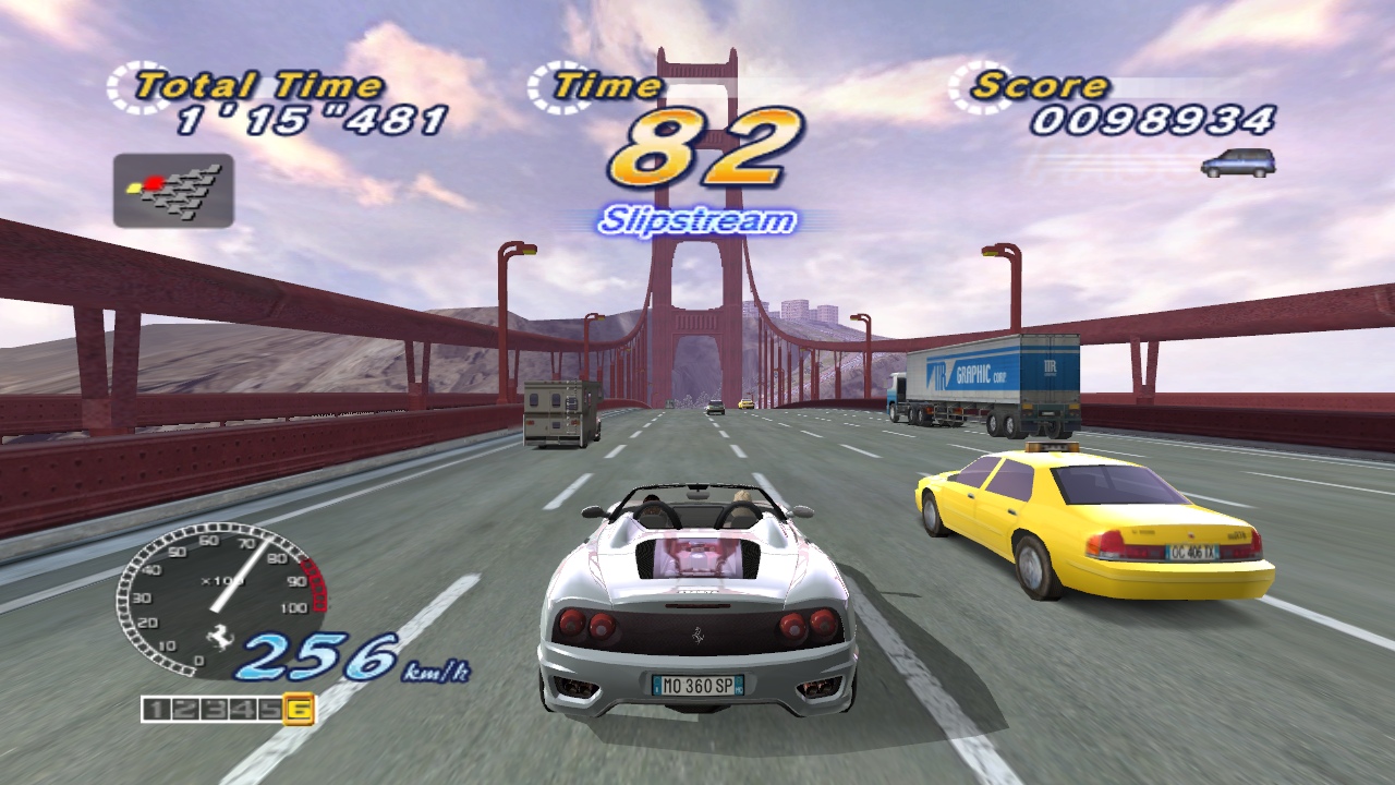 Sega put United Kingdom-based company Sumo Digital in charge of porting the game to the Xbox, and they did a spectacular job. They also added plenty of hidden cars and stages, most notably some from other Sega racing games like Daytona USA 2 and SCUD Race. This is a nice bonus since these games have never been ported. The Japanese version has better looking, more accurate versions of these tracks. There’s an expansive mission mode that puts you through various parts of each level and has you attempting to fulfill certain goals like in the Heart Attack mode. Plus plenty of additional new tunes, notably some nice remixes courtesy of Richard Jacques (known for his work on Sonic 3D Blast and Jet Grind Radio), online head-to-head for up to eight players through Xbox Live, and finally, the 1986 original arcade gem to unlock.