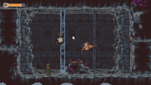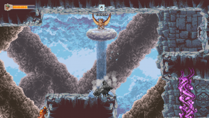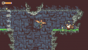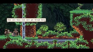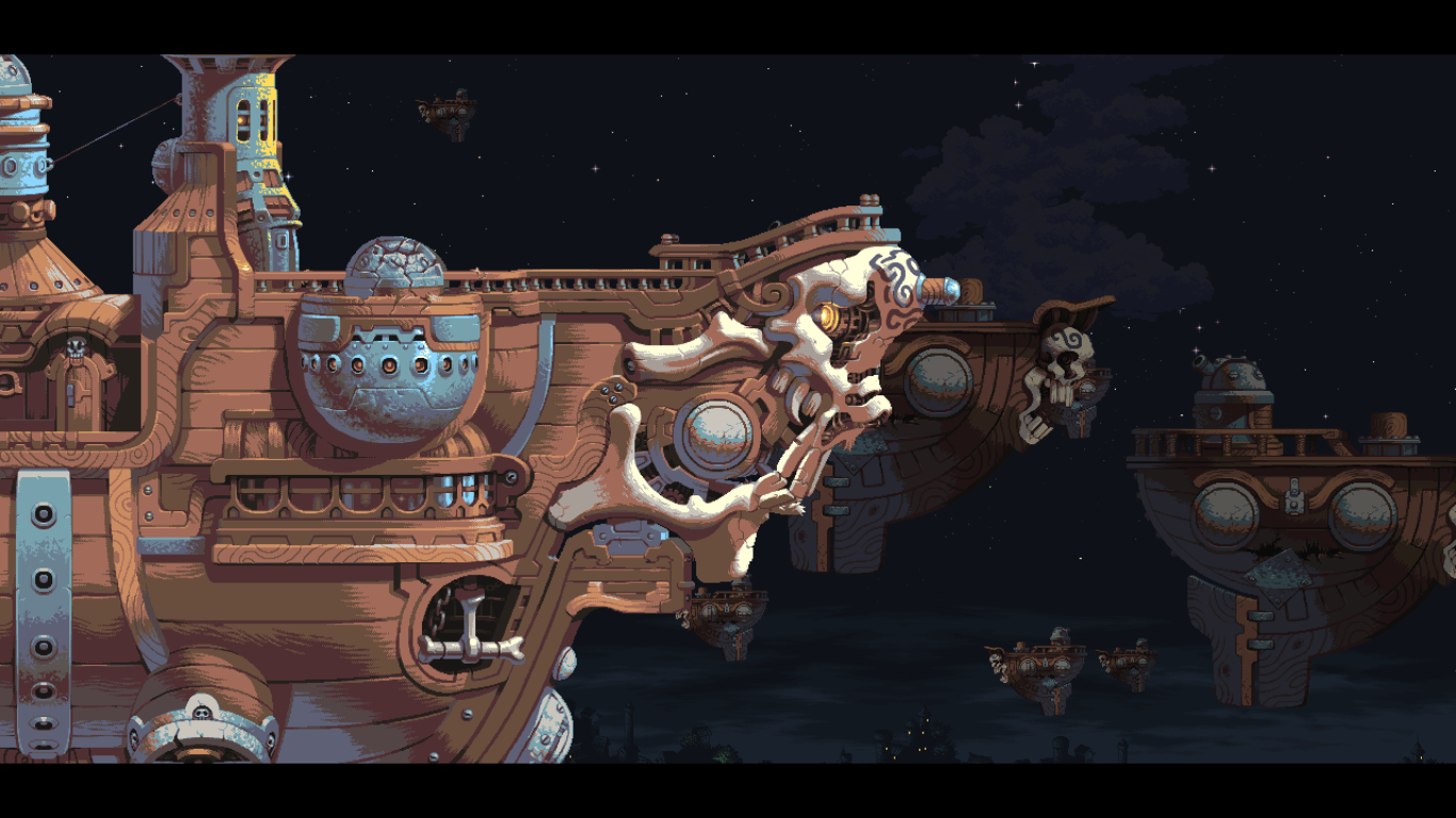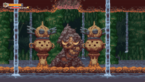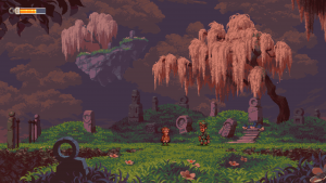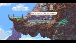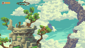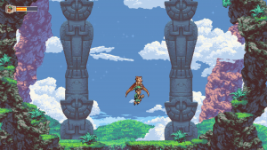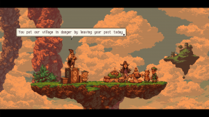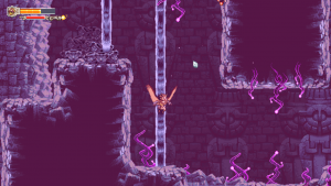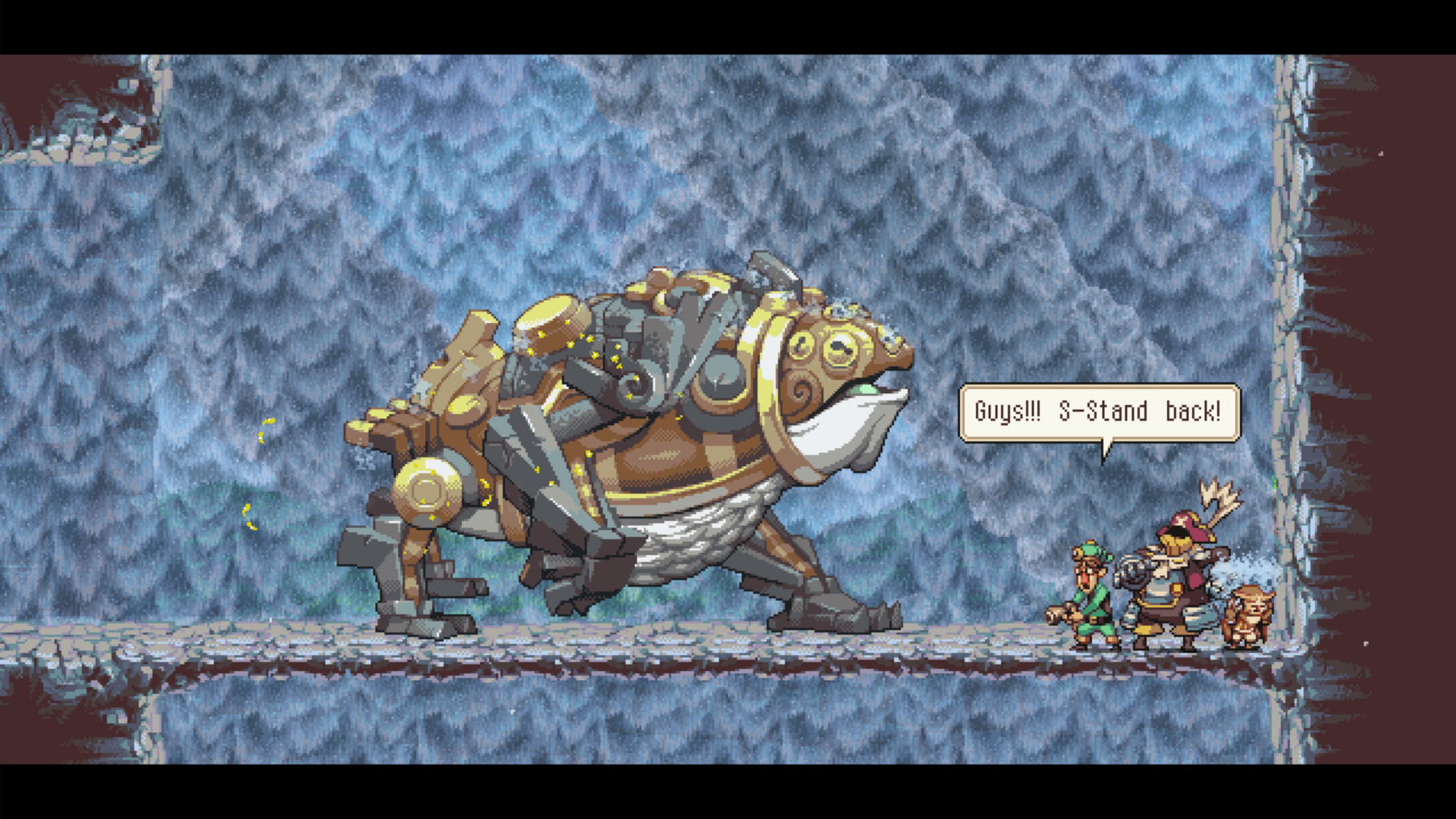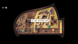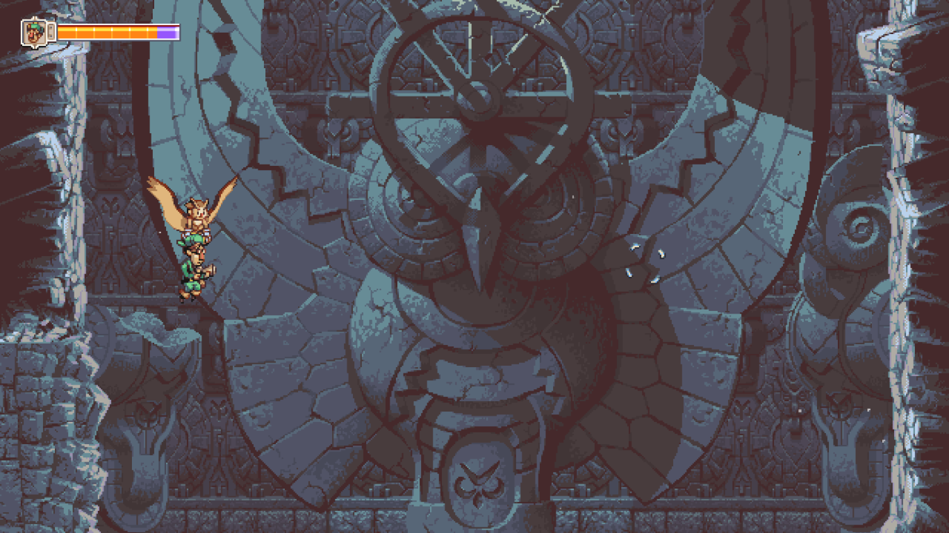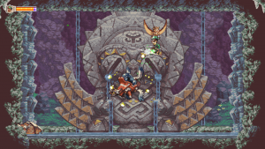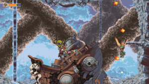 It’s a good thing the game that came with the beautiful sprite work is pretty good too. Owlboy is sort of a side-scrolling Zelda, with a few of its own twists. Its style is heavily Zelda-like, down to the character designs and technology on display. It also plays with a few familiar tropes from that franchise, mainly a seemingly normal, mute kid becoming the world’s great hero, and has a similar sense of progression. There are multiple dungeons to explore, each with their own gimmicks and styles, combining combat challenges and puzzles. Said puzzles aren’t the usual Zelda-style headscratchers based around a central item, though, as later dungeons become more focused on stealth and survival challenges, but this change gives the game its own flavor.
