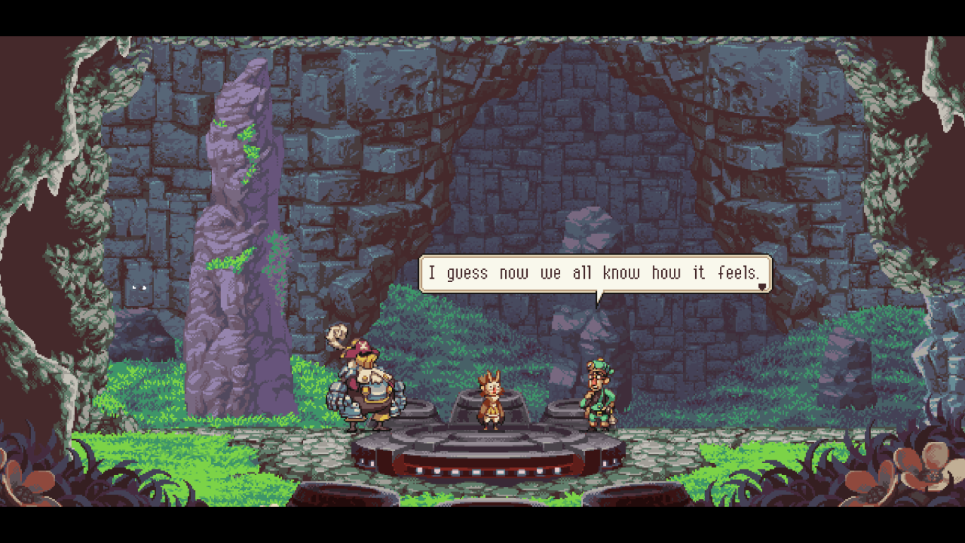 It’s a game about not only learning to live with what you’ve experienced, but one that tries to teach empathy. There are monsters in the world who want nothing more than to hurt you, and you should resist them. But they are also those who don’t realize the pain they cause, or those going through their own pain and acting out of fear and frustration. There’s only one single truly evil character in Owlboy, and everyone else is either old and tired or scared and unable to communicate. We will face tragedy for as long as we live, but we will also face hope and joy. We will know hatred and we will know love. Owlboy constantly communicates that.