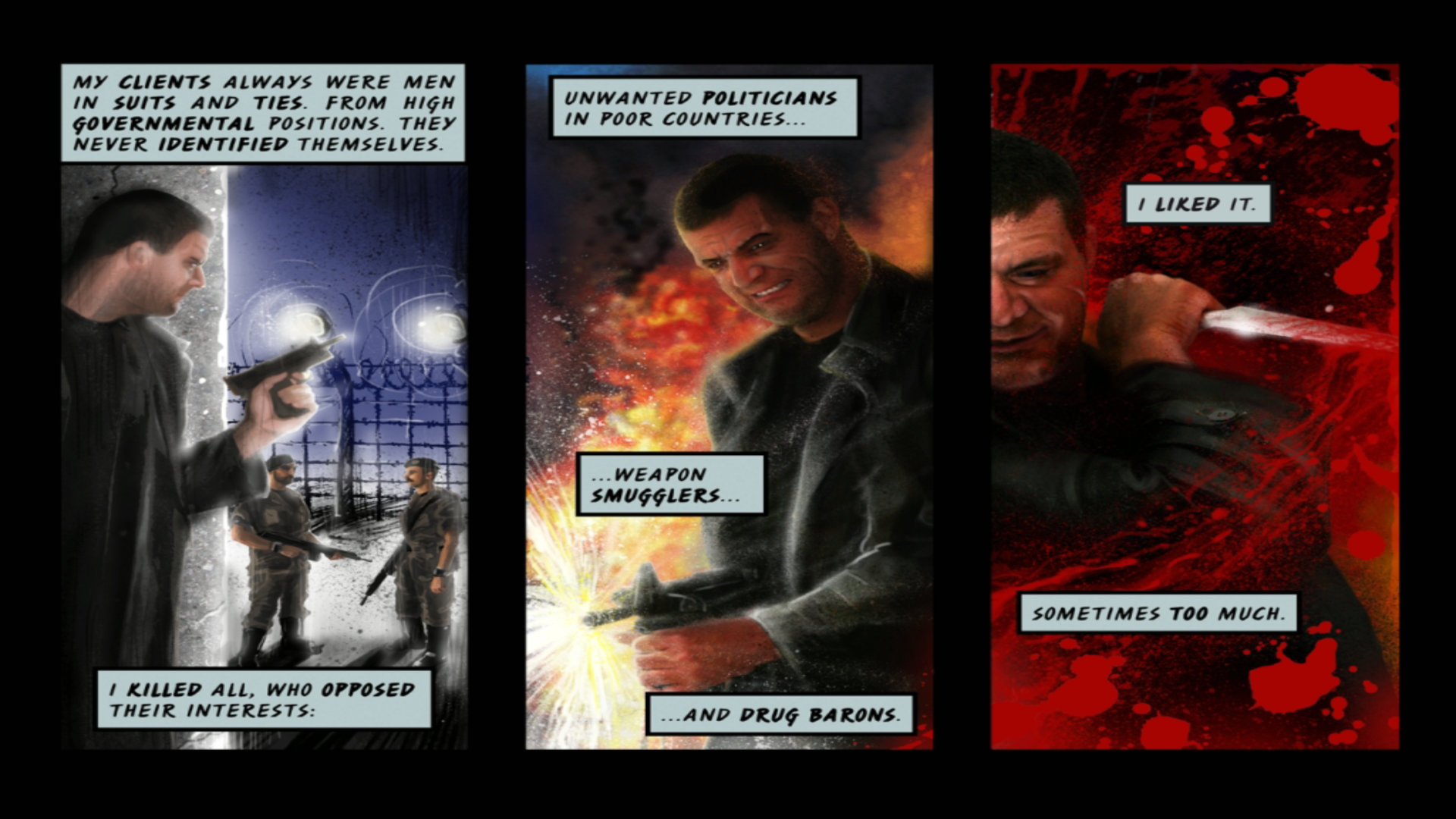 Resurrection is much worse, though also more charming. It’s sort of a different take on Daniel’s story, this time focusing on an assassin named Bill Sherman (who looks exactly like Daniel for some reason) fighting for a second chance after accidentally killing a bus of innocent people during a botched hit. It has almost cute little Max Payne comic cutscenes with full voice acting, a nice way to get around an FMV budget and still keep a memorable story telling tool. There’s even dialog in levels, giving bits of definition to Bill and his guide.