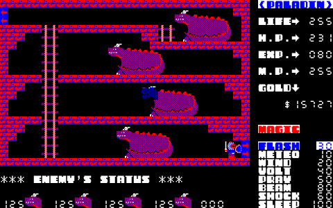 Paladin (or “The Paladin“, as written in-game) is an early action-RPG released by Bothtec in 1985. Various Japanese sites indicate that Falcom’s Xanadu was extremely popular at the time, having been covered in magazine’s strategy sections for months on end, which likely influenced this title to some extent. However, it’s far from a ripoff – in fact, it’s quite a bit friendlier, if mostly because it’s more linear, and there’s no karma system to screw you over.