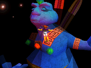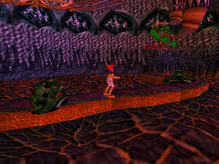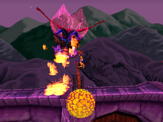 Again with the first game, a PC port was created with the same perks and drawbacks. A Saturn release was planned but ultimately scrapped, possibly in no small part to the more intensive color effects and moreover the dwindling demand in the west for the platform. Other than digital PSN versions, Pandemonium 2 saw little ports or releases. This sexy form of Nikki did have a very brief cameo at the end of Gex: Enter the Gecko, sitting on his bed waiting for him in the ending FMV. Quite a disturbing insinuation there, Crystal Dynamics. On the foreign side, the sequel was released in Japan under the title Miracle Jumpers. Unlike Magical Hoppers, there’s zero difference to the game aside from redubbing the dialogue.