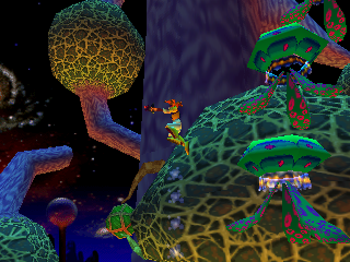 Crystal Dynamics had a more direct hand in Pandemonium 2 compared to the first. The framework for the sequel isn’t all that different. Seeing as it was only released a few months after its predecessor, much of the technical assets are carried over, and a few of the early levels mirror the backdrops previously seen. However, shortly in, the drastic change in presentation becomes quite clear.