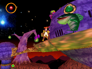A “Comet of Infinite Possibilities” is making its next 300-year cycle past Lyr, and everyone’s scrambling to make their wish to it. Not only are our trio butting heads trying to get there first, they have to outpace the evil Goon Queen Zorrscha (whom looks rather sexy for a leader of dumb ugly blue monsters). Merely reaching the comet isn’t enough, as all the magical power lies deep within the core. In fact, 3/4ths of the game takes place on or inside the comet, which surprisingly houses lagoons, temples, and mechanical steel-laden complexes within. This acts as another far-flung departure to the style of the first game, as majority of the stages have a trippy, neon aesthetic that only intensifies the psychedelic aura as it progresses. It does push the colored lighting and vivid look of the game, but foregoes much of the fantasy elements for most of the playthrough.