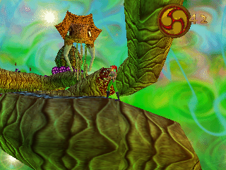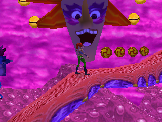 The gameplay did recieve some minor additions. Much of the new platformer content deals with Fargus and Nikki using their hands. Ropes and suspended handrails are added to the layouts, as well as grasping ledges and holding onto flying objects. This gives some more verticality to many stages, but with the camera panning, it can add to frustration traversing or floating upwards. Fargus also got a helpful attack boost, being able to fling Sid like a boomerang. Spells are mostly alters and also affect the jester differently. The normal fireball is back, but the Shrink and Freeze Rays were removed for 2 new powers. One is another fire spell that’s an aimable blast for Nikki and a deadly torch that lights Fargus on fire, and the other is a lightning bolt / inflatable Sid pump. Nikki does benefit more from the spells, but at least Fargus has more offensive versatility in his normal state, despite still lacking a double jump. All shapeshifting transformations are missing, instead replaced with vehicular segments. It now takes 500 coins to earn an extra life, and only a modified form of the Speed Greed bonus game is available at the end of each level. In one final addition, there’s different endings depending on which character defeats Zorrscha. Nikki gets her power and Fargus makes everything look like him, much to Sid’s dismay. In all honesty, this is mostly a expansion pack-level sequel. It brings most of the same issues plaguing the original and coats it all in a psychedelic paint.