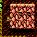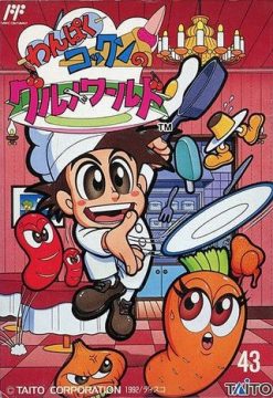 Before Panic Restaurant came to Western territories, it was called Wanpaku Kokkun no Gourmet World in Japan, with “wanpaku” meaning “naughty” (a familiar word to Splatterhouse enthusiasts) and “Kokkun” being the name of the protagonist. Kokkun looks much younger than Cookie (below), and instead of a frying pan, he bashes opponents with his head. It has the exact same functionality as Cookie’s pan, but it looks significantly goofier. The bad guy is also called “Hors D’Oeuvre” (the French word for “appetizer”), likely what the rather goofy “Ohdove” was supposed to be in America but was badly localized. Wanpaku Kokkun mostly plays the same as Panic Restaurant, but it is quite a bit easier with less frustrating enemy placements and a bit more generosity in power-up distribution.