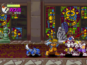 Each level has a unique boss, and many of these are as equally colorful as the main cast, particularly Senka, a vivacious catgirl. In addition to the anime intro, all of the bosses have voiced pre-fight dialogues. As with all of the other games in the Mad Stalker/Guardian Heroes lineage, these can all become playable in both multiplayer and single player modes, though they either need to be unlocked via multiple playthroughs or by entering a code. What is a little weird is that these secondary characters have their own personalities, but the actual four protagonists don’t speak a word beyond their attack grunts, and don’t really have any storyline dialogue.