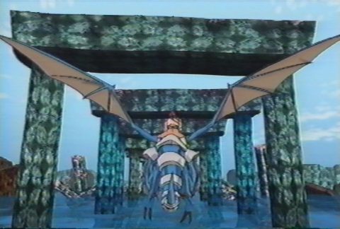 It’s hard to develop attachment for character in only one episode, but all Kyle seems to do is yell is his dragon for not listening and whine about saving his dear Alita. The lackluster plot isn’t saved by the visuals either. A few of the segments – notably the intro and any shot with the Empire ships – are rendered with computer graphics that looks reasonably like the models used in the game cutscenes. For the time, they weren’t too bad, but it greatly clashes with the hand drawn characters, so it isn’t even all that visually appealing. Which is really shameful, given the richly detailed world of Panzer Dragoon, which could have been brought to life in the hands of a better animation studio. The action scenes aren’t that particularly good either. Similarly, the music is lacking – the main theme seems to borrow a bit from the Saturn game, but most of the soundtrack is rather lousy.