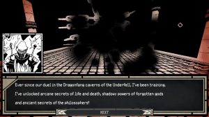 Paper Sorcerer would like to be an epic tale of trust, love and treason, told by slowly piecing together the plot puzzle pieces, but it can’t really reach that goal, especially since the general tone is undecided between being serious and goofy. There are a few comedic situations, such as the running gag of the zombie shopkeeper resorting to increasingly zany methods to attract customers, and the “wacky” final cinematic doesn’t help matters.