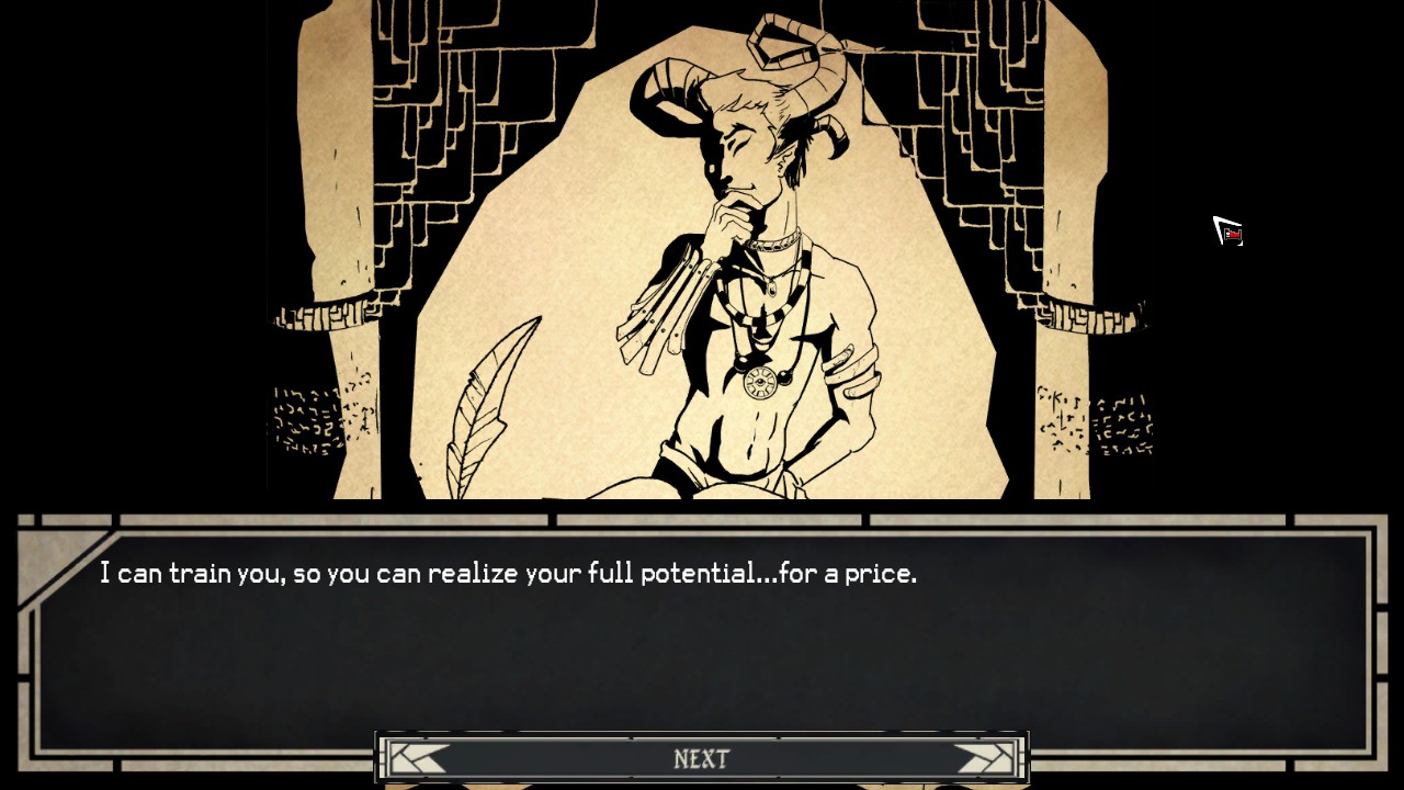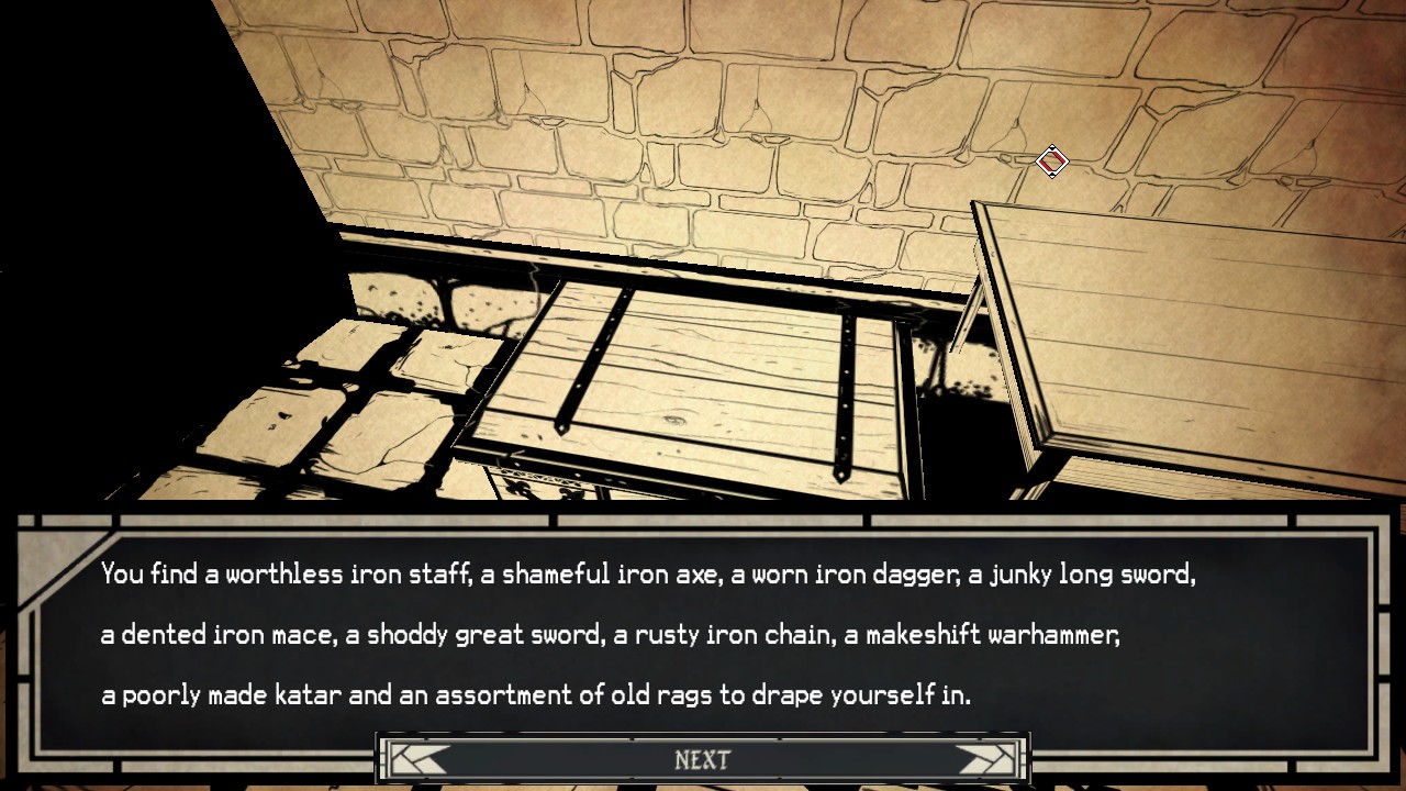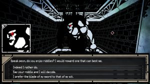 The game’s main point of interest are the original and effective graphics: Elegant in their chiaroscuro, they convey the idea of a world entirely made of paper, while also being reminiscent of the artwork from all those player manuals of old. The various opponents and friendly creatures look like they escaped from a 1980s monster manual as well, and actually come from high resolution scanned ink-on-paper pictures.