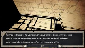 The text-only menus look and feel like in early PC games, maybe a bit too much: sometimes the simple act of equipping new armor and weapons via the mouse can feel impractical, and their statistics aren’t clearly displayed either. The texts are also plagued by typos and other mistakes.