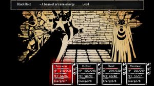 The music suffers from the same out-of-place feeling: The various BGMs are strange, moody electronic tracks that would seem more at home in an indie puzzle game or shoot-’em-up rather than in a fantasy dungeon crawler. They’re not too bad, but can detract from the overall experience. Sound effects are your usual ZAPs and OOFs that barely register any more after a while.