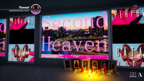The key to this seems to be the context the game frames everything in, from how you interact with the world in such a limited but fleshed out manner to just what even this world is. There’s powerful Silver Case atmosphere, bringing the idea of a dehumanizing urban sprawl and class struggle in the most cartoonishly obvious way, but obfuscating things enough that you don’t always pick up on it and then a character just reminds you “oh yeah the mass human sacrifice ritual is done already.” The brilliant bit that makes this work is that you experience the world from the perspective of Lady Love Dies, someone who is neither truly good or bad, but rather an avatar of justice and truth.