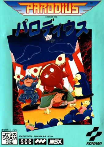 The Parodius series begins on the MSX. Its sequel, which is named Parodius in English letters on the title screen, is actually named Parodius Da! in Japanese, and started as an arcade game before being ported to many platforms. The subtitle of the MSX game translates to “Octopus Saves the Planet”.