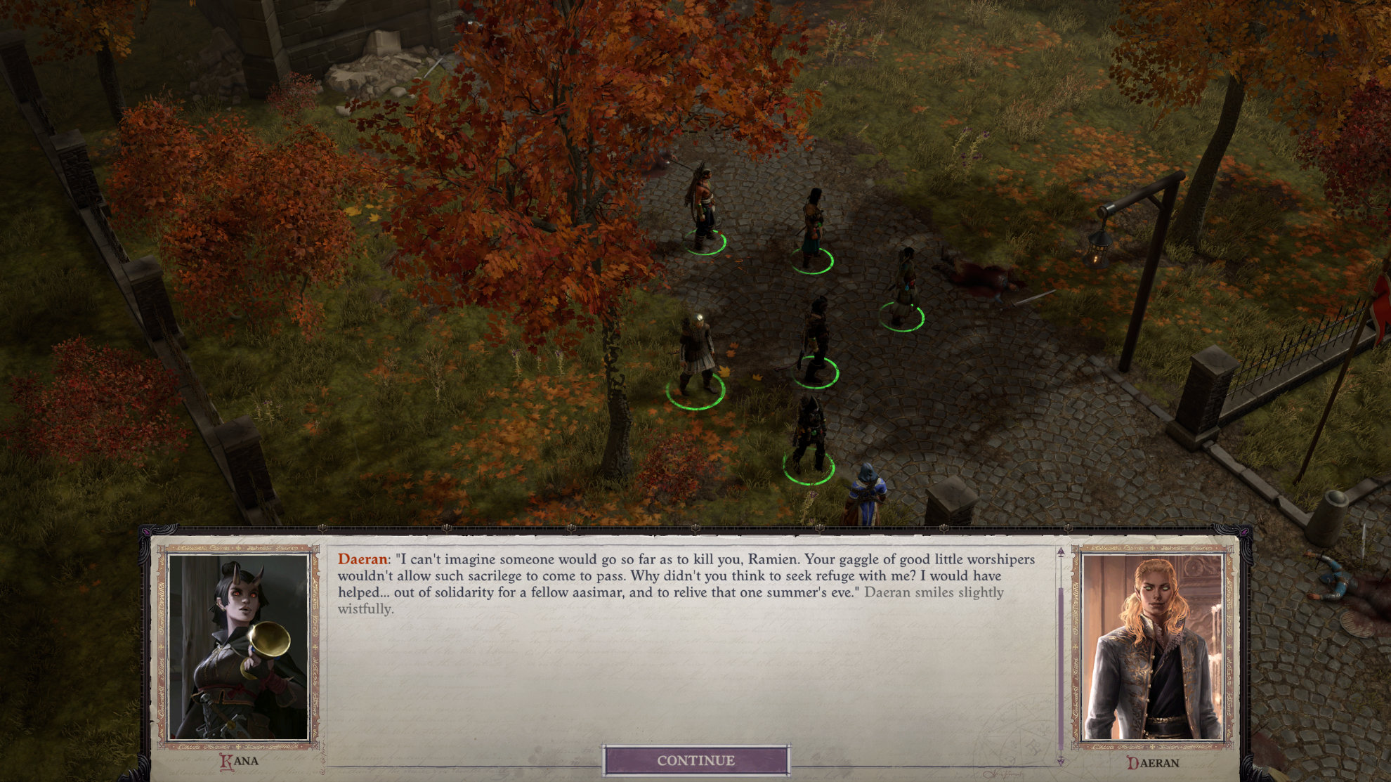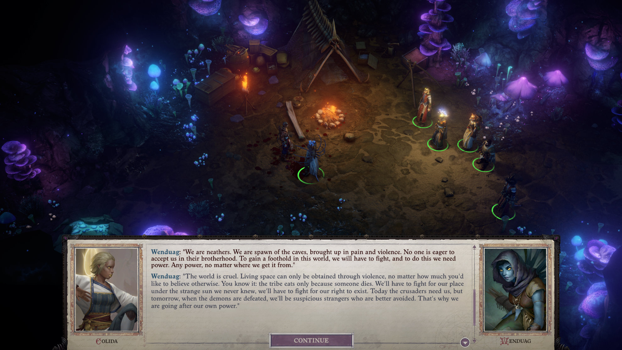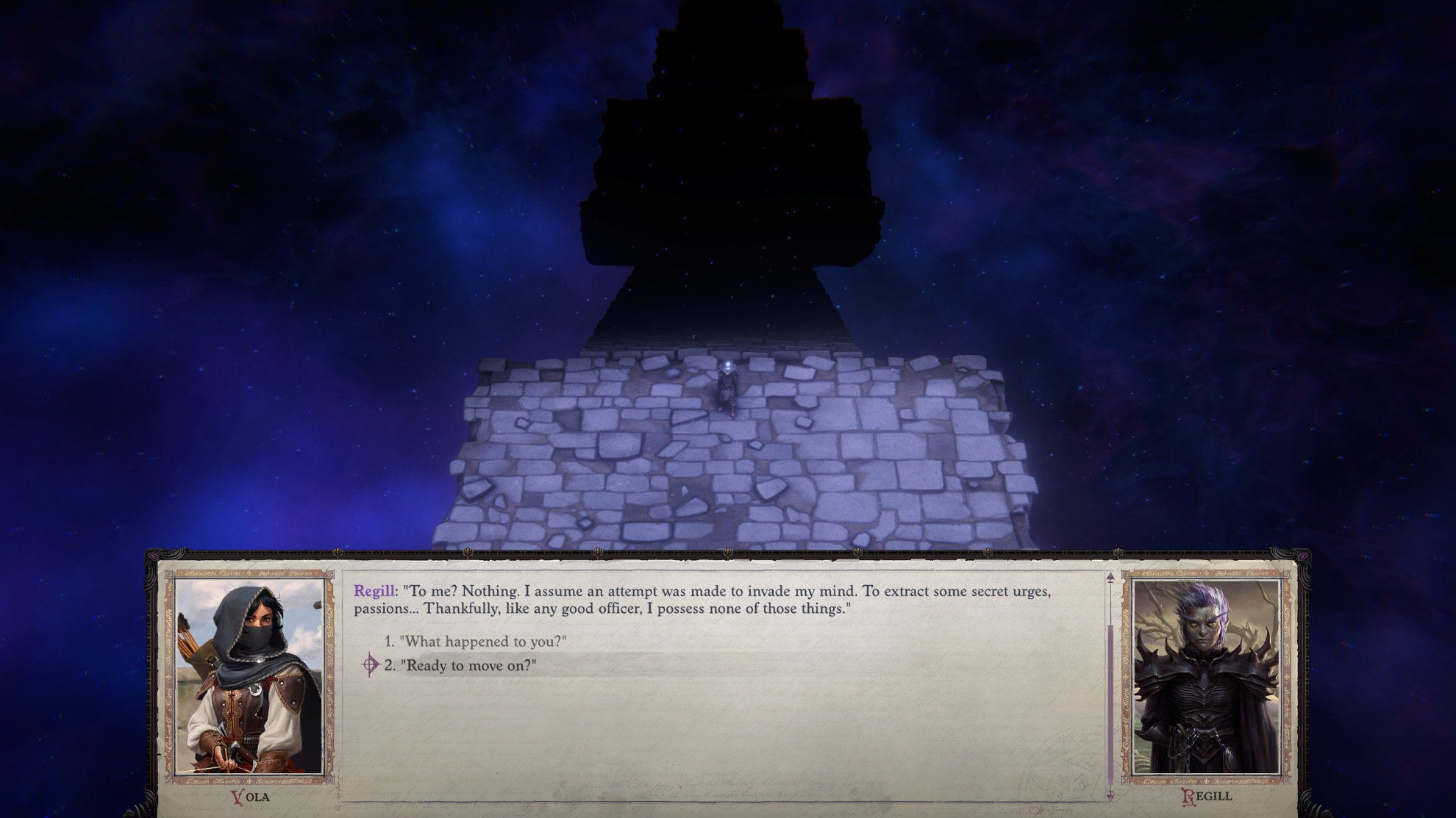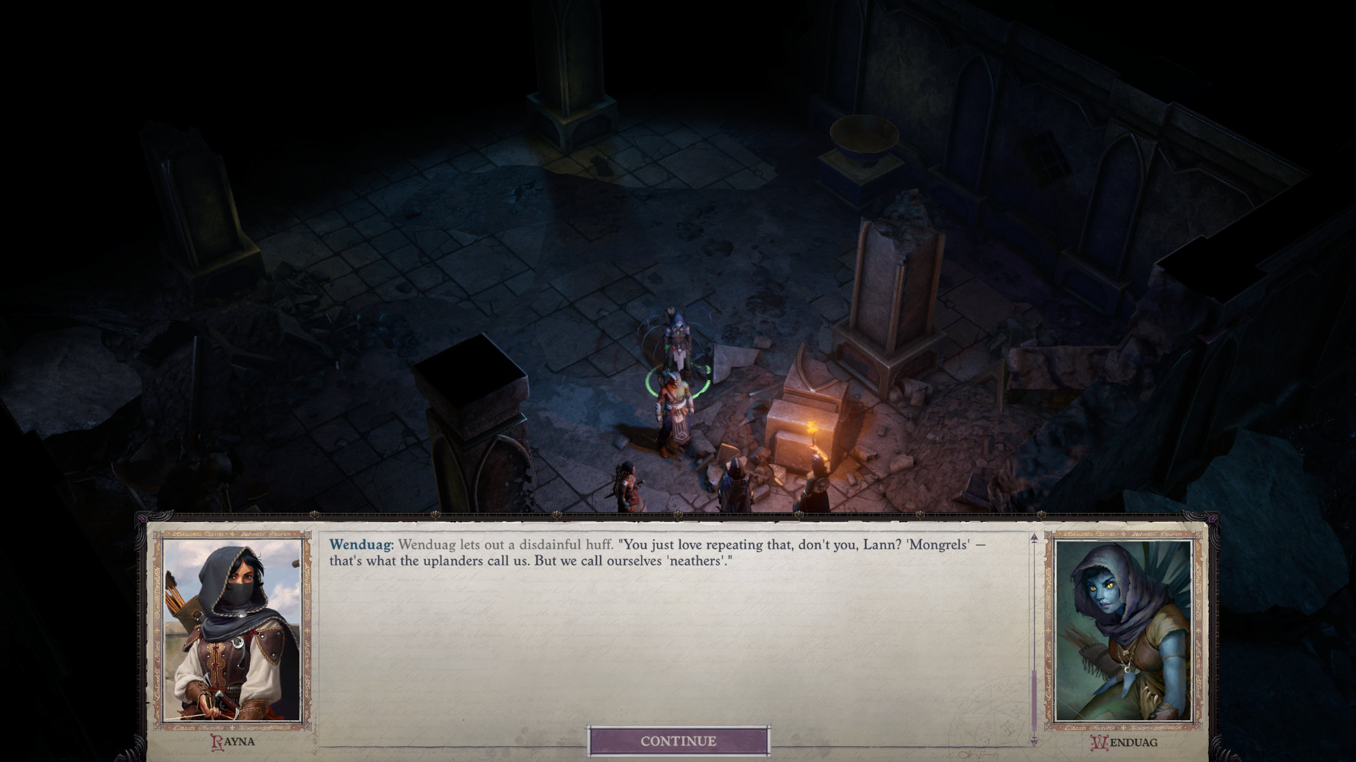 As for more bonkers examples, take the wizard Nenio. She’s another true neutral who only cares about science and knowledge, to the point she chooses to forget unnecessary information, like most of her own past or your name. One of her character quests is just her trying out human concepts like “conversation” and failing miserably – which ends up being major foreshadowing for reveals for the end of her quest chain. There were a few surprises like this in Kingmaker, but WotR goes the extra mile constantly, also rewarding you for paying close attention to dialog and narration.