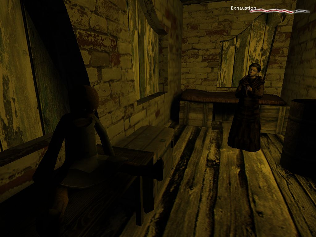 Pathologic is a "survival game" in its purest and most intense form. You need to eat, sleep, avoid injury and, most importantly, avoid infection by the sand plague. It's actually fairly easy to avoid infection, especially if you abuse the quick save/load options, but getting infected adds an incredible new dimension to proceedings - the regular need to medicate yourself. This entire system meanwhile is facilitated by a constantly fluctuating economy, based around currency and bartering. At first medicine, food, and clothing will be plentiful, but as panic sets in prices will rise, money becomes worthless, and the authorities will start imposing draconian measures to maintain order. You may well find yourself trading in your only handgun for some bread and antibiotics, while outside the store arsonists set fire to anyone they think has the disease.