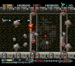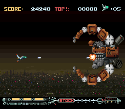 With cool backgrounds and several fun weapons, the game’s only real faults are in its actual enemies. Most of the game’s foes are just plain uninspired, not well defined hunks of metal. While not every game will have enemy fighters are iconic as what’s found in the Gradius or Darius series, Zoom’s adherence to creating a more grounded set of military targets to blow away works against the generally colorful nature of the game. The exceptions comes near the end of the game, with some cool looking biological looking creatures, but even then, they aren’t as cool as the ones in R-Type.