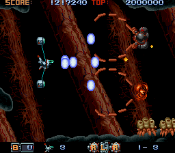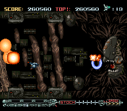 Almost a decade after that, Zoom ported Phalanx to the Wii as a downloadable WiiWare title, just in time for the company’s twentieth anniversary. Rather than being a simple emulated version of the SNES game like a typical Virtual Console title, this is actually based on the X68000 version, with some changes and enhancements. Owing to the higher resolution, most of the sprites have been redrawn to feature more detail, though most of the game looks almost visually identical, though it’s missing some of the parallax scrolling layers in a few areas. The music is based on the X68000 version too, with slightly different sound synth. Like the SNES version, you can switch your weapons and speed on the fly, though missiles are still limited.