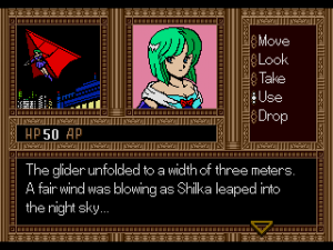 The spoiled daughter of one of Paseo’s richest families, Shilka has taken to stealing for the thrill of it, growing more sophisticated with each heist. She finally turns her sights on a famous painting held at an art gallery in the famous Kaiser Building. As the rich and famous gather to celebrate the building’s 5th Anniversary, Shilka hatches a plan to get inside from a neighboring hotel and make it past the security systems… Shilka’s Adventure’s theme of stealth and deception lands itself to a cleverly constructed little game with an emphasis on inventory-based puzzles, even throwing a red herring and an instant death or two in the mix. It’s also notable for being the only one in the series to feature a handful of illustrations depicting actions and locations rather than just character portraits and monsters.