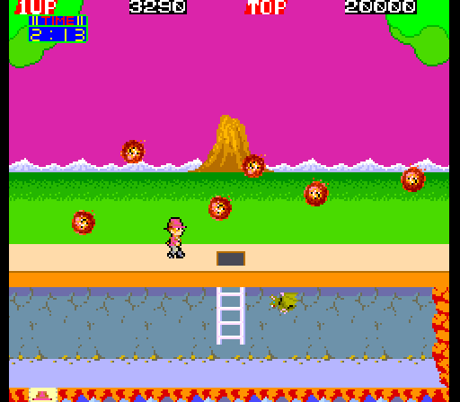 In 1985, Sega licensed Pitfall II from Activision and turned it into an arcade game – one of, if not the first, console games to receive this treatment. Sega didn’t just make a prettier port of the original, though. They added things from the original Pitfall!, plus a lot of original touches of their own. It’s like they took the best of the first two games, threw them into a blender, then added their own unique touches. The end result was Pitfall II: The Lost Caverns.