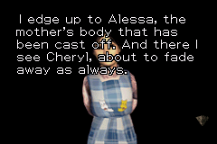 The bulk of the game plays out depending on the player’s decisions at certain moments in the story, like how to engage a monster or which way to follow Cheryl. A flow chart maps out the progress through these choices, and allows players to jump around a given scenario. Like other visual novels, you can scroll back through a history of previously read text, in case you missed a detail. Occasionally, simple logic puzzles provide a break from the reading, with none of the puzzles from the PS1 game making an appearance. The average playthrough is about 1-2 hours, depending on reading speed. To add to replay value, a variety of new endings were crafted, 14 or so between both scenarios. These cover a host of what-if scenarios that play out if the player chooses a path outside of the ones in the original. Each ending gives a few trading cards when the player gets them, and there are 32 cards to collect in all. Well, only 28 are actually possible to collect, since 4 are exclusive to the DLC scenario (these are unlockable with a hacked save file, fortunately.)