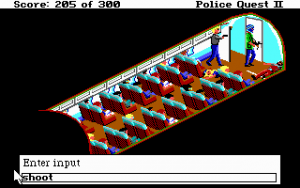 There’s more of an ‘80s cop movie vibe going on, as Sonny is accompanied by a mustachioed partner who’ll make occasional wisecracks, although he’s functionally useless during investigations. These light-hearted moments are fairly sparse, though, as Police Quest 2 is a much darker game than its predecessor. At one point you’ll even need to defuse a bomb on a plane, although this is one of the game’s biggest narrative flaws. During a flight, it’ll get hijacked by terrorists, which are the typical turban-wearing types from the Middle East, which has absolutely nothing to do with the Bains case. It’s just there as an excuse to snip different colored wires, and, of course, more scenes where you need to be quick on the trigger finger.