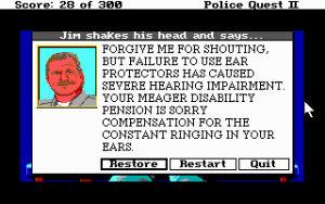 Police Quest is a series that’s been lost in the shuffle compared to other Sierra games, but if there’s any one title that deserves attention, it’s this one. It’s well-paced, fairly exciting, and more interesting than any of the others, and something of an overlooked classic.