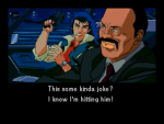 Hideo Kojima has long been enthused by Hollywood movies, as evidenced by pretty much every single work he’s ever done, ranging from the influence of Blade Runner in Snatcher, to the likenesses of several famous actors unofficially used in Metal Gear 2. Just from looking at the two main character, it’s obvious that Policenauts is a homage to Lethal Weapon, but the relationship is more than skin deep. There’s the liberal use of the saxophone in the soundtrack, usually accompanying both shocking and hilarious moments. There’s Ed’s hot daughter that flirts with Jonathan, complete with a jovial family dinner with terrible food. And Ed, wouldn’t you know, can’t bring himself to fire his gun due to a traumatic incident in his past. (This isn’t quite Lethal Weapon, but still a well known trope.) There are tons upon tons of cop movies cliches here, but it pulls off the buddy cop thing extremely well, and there are plenty of humorous moments throughout, even though they mostly highlight how hilariously incompetent (and irresponsible) the heroes are. Jonathan is not only a hothead, but a bit of lech, rudely commenting and hitting on on every girl he meets, and occasionally finds ways to cop a feel, complete with boob jiggle. (There’s actually a whole person, a woman no less, devoted to these animations, according to the credits.) Allowing the player to be a bit of a pervert is a running gag with Kojima – Gillian Seed from Snatcher was much the same way, although it was toned down a bit in the English release.