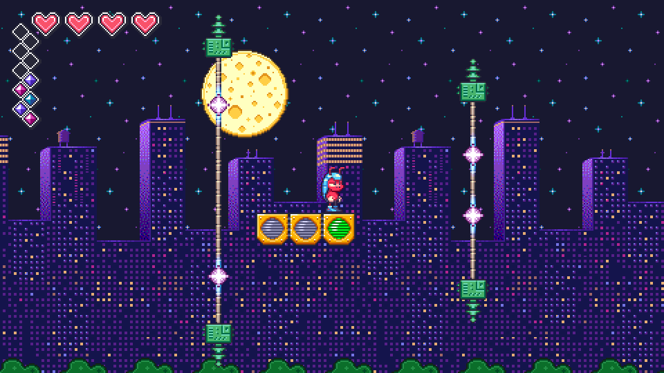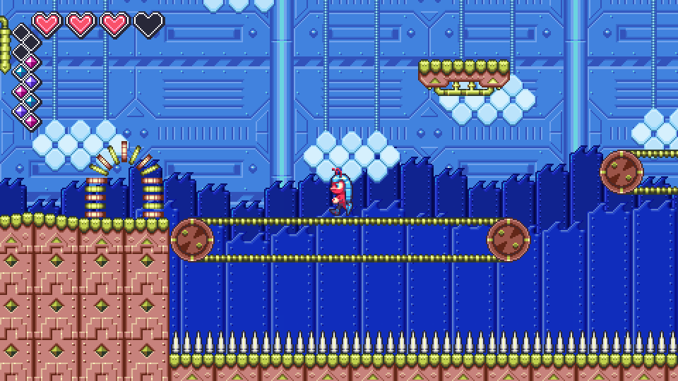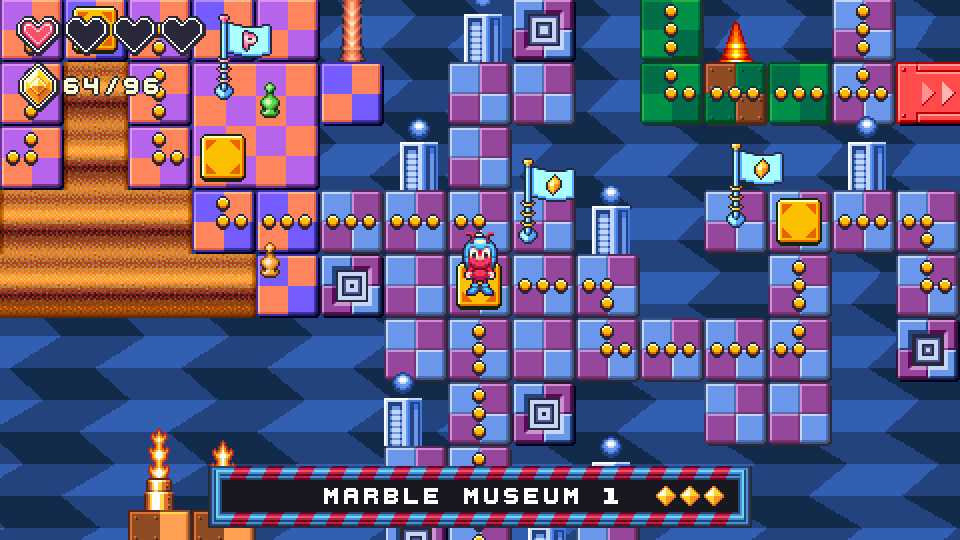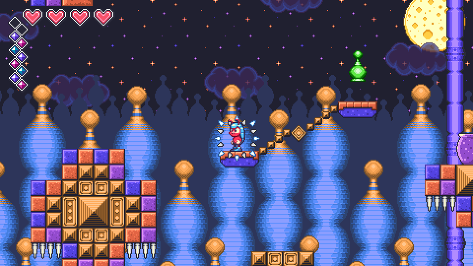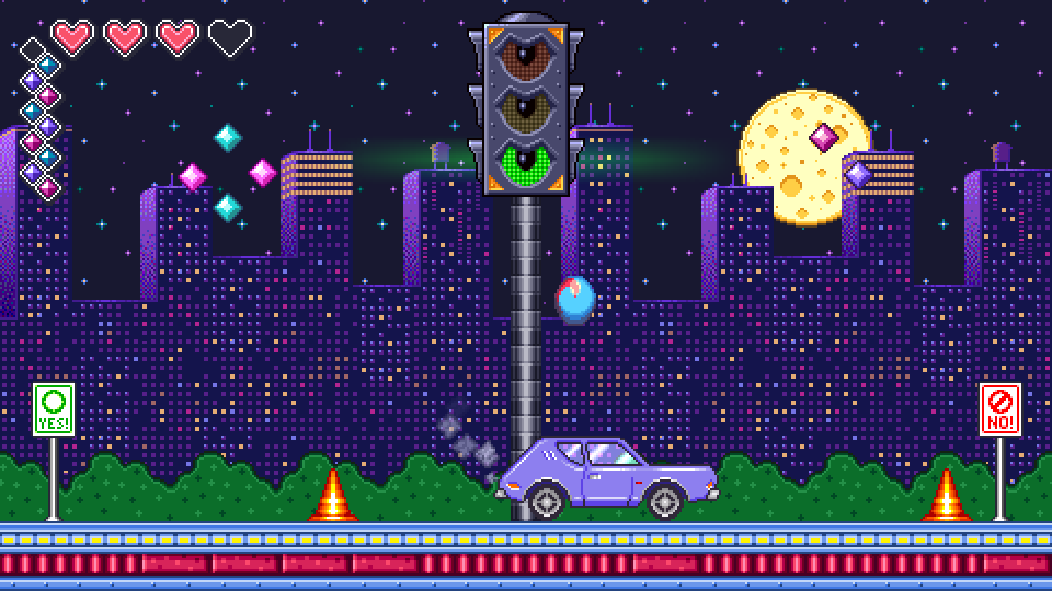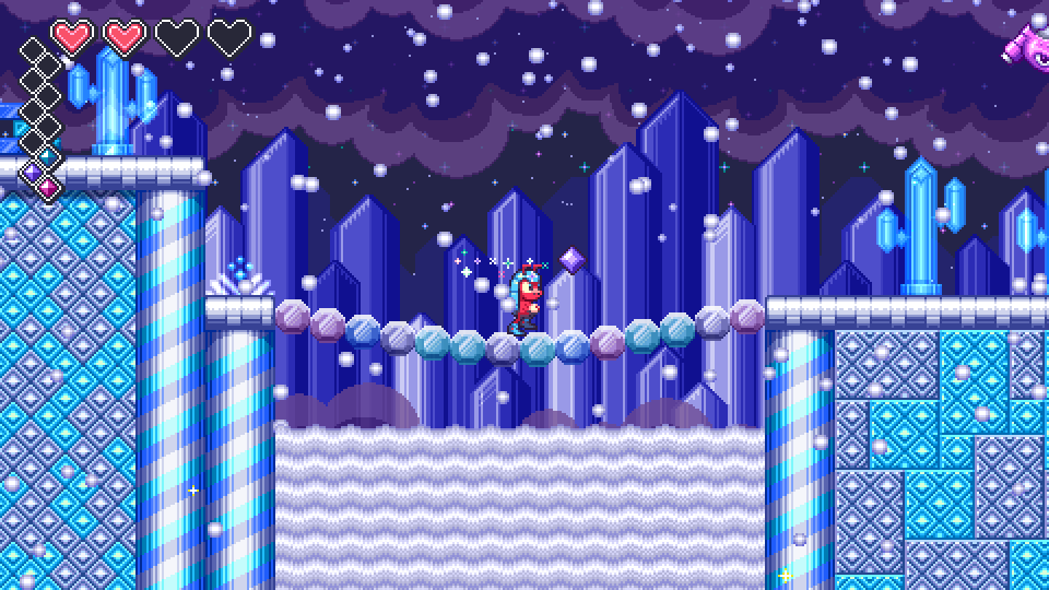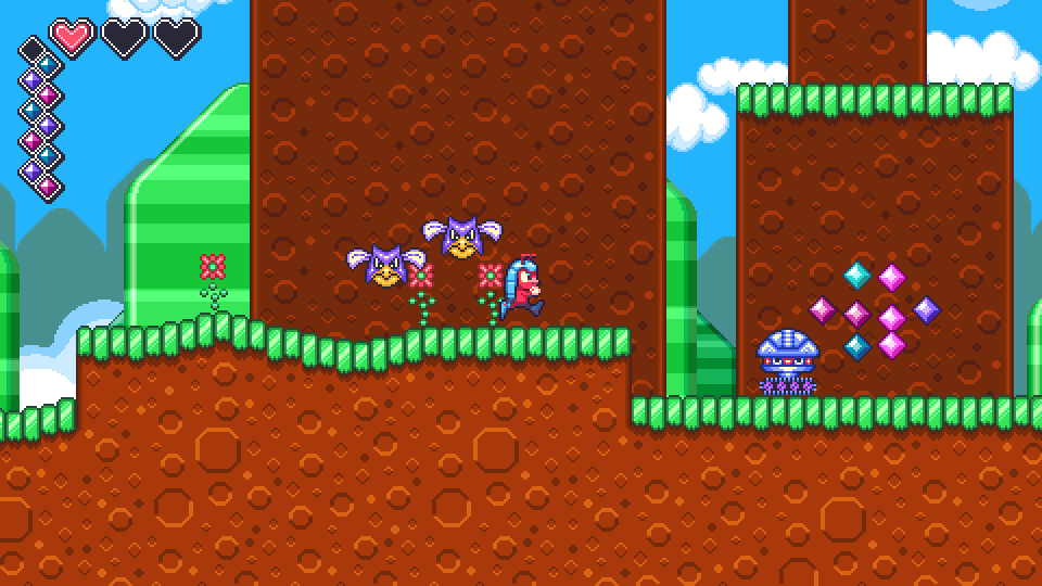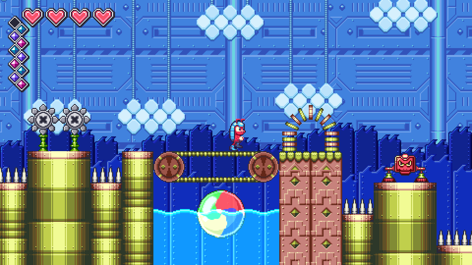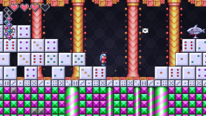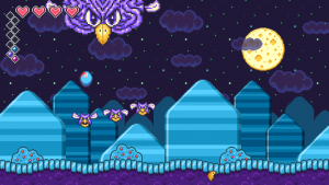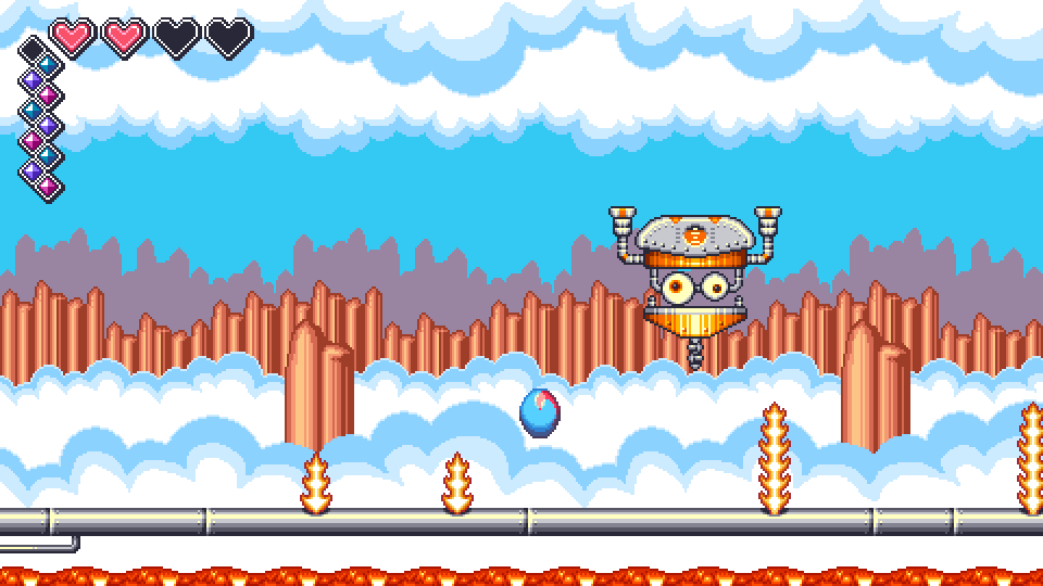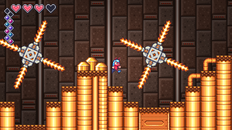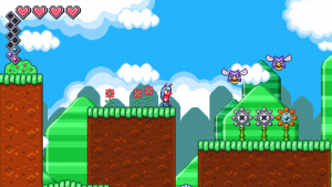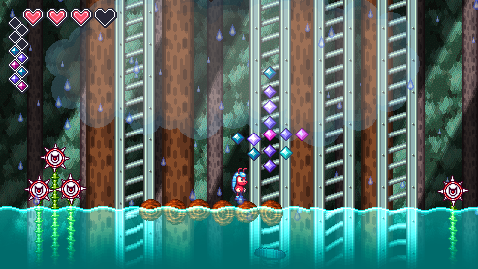 These make each stage a memorable adventure, and complements the game’s breezy pacing in how it only takes a few minutes to beat any level. There aren’t checkpoints, so you’ll restart from the beginning every time, but this doesn’t become a problem since it’s easy to see where you went wrong and can fix it.That said, you restart with only one heart, and having to collect gems to refill your health constantly gets pretty annoying.