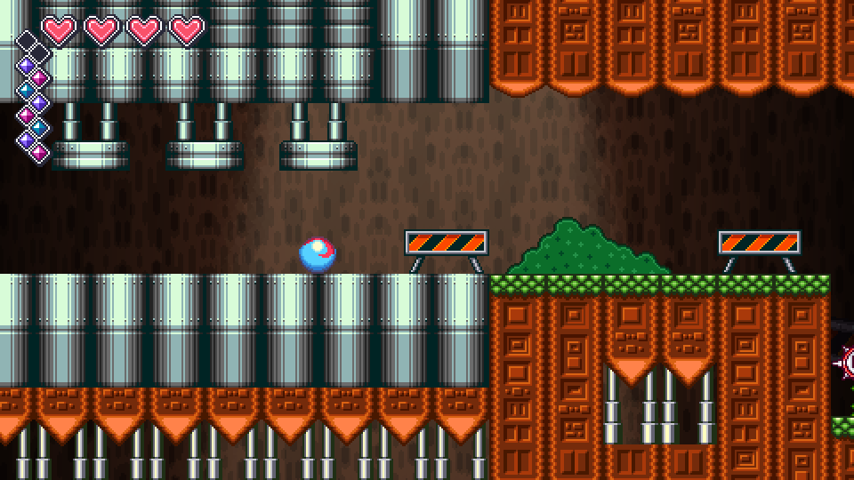 Polyroll also has a good deal of charm thanks to its aesthetics. The graphics are bright and colorful, with clear visuals that tell you everything you need to know at all times, plenty of unique backgrounds and tiles to make each world stand out, and a smooth framerate that ensures the game looks and plays well. In terms of sound, it’s a slightly mixed bag but nevertheless good. The sound effects suit the game’s style very well, with punchy but clean sounds for attacking enemies, collecting objects, getting hit and more. The music by Andrew Riley is overall pleasant, and the variety of styles and instruments used fits each world memorably. However, the loops are short and abruptly restart, which can sometimes grate.