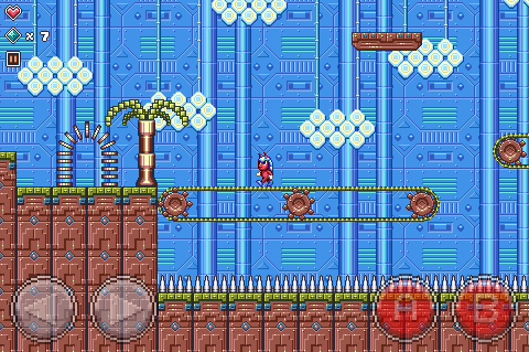 Polyroll tasks you with getting to the end of the stage, as you jump around, bounce offenemies and roll your way into objects much like Sonic. You have three hearts to protect you from enemies and hazards, but you can replenish a heart by collecting 10 of the many gems scattered around. You can also find gems hidden in flowers, along with special shields that protect you for an extra hit and grant you different abilities depending on the shield type. From dropping bombs and hovering in the air to attracting nearby gems and safely walking along spikes, these shields are very helpful when tackling some of the game’s tougher sections.