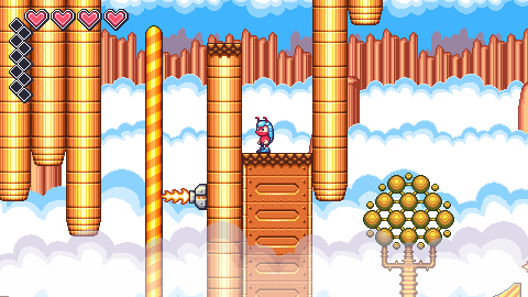 These make each stage a memorable adventure, and complements the game’s breezy pacing in how it only takes a few minutes to beat any level. There aren’t checkpoints, so you’ll restart from the beginning every time, but this doesn’t become a problem since it’s easy to see where you went wrong and can fix it.That said, you restart with only one heart, and having to collect gems to refill your health constantly gets pretty annoying.