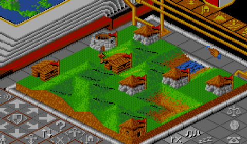 Attesting to the irresponsible lengths the Populous fad went worldwide, a Game Boy port was also released in Europe and Japan (under the moniker “Populous Gaiden”), which has to be seen to be believed. Menus appear in chunks that need to be scrolled across just to be read, while in-game there is no HUD whatsoever: all possible actions and Acts of God are confined to a grid in the start menu, meaning players must painstakingly tab back and forth in order to do anything. Truthfully, it is a barely-playable cash-in, based on a blueprint provided by Corpes and which he has claimed (sarcastically, one hopes) was his favorite.