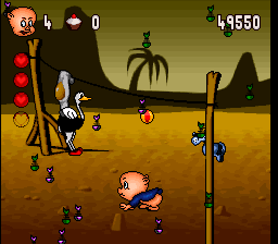 Porky Pig is sitting up at night reading holiday brochures, wondering where to go on his next vacation. He decides to sleep on it, only to be thrust into a globe-trotting nightmare in a world ruled over by Daffy the Count Duck. The “dream” scenario is a relatively common one in games based on established licenses; it gives the developers the freedom to do whatever they want without violating the internal logic of the property. Haunted Holiday perhaps doesn’t make the most of this freedom, often lapsing into platform game level clichés (the forest level, the underwater level, the mine level etc.), but it has its own little oddball flourishes.