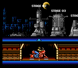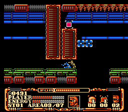Power Blade is such a huge improvement over Power Blazer that it’s not even funny. Other than the change from a stumpy robot to a muscular dude with a buzz cut named Nova, the graphical style is pretty much identical, in some cases reusing some of the same background tiles. Most of the enemies are the same, although there are a few new ones. Most of the bosses are identical too, although some of the goofier ones – the Frankenstein monster in particular – have been redesigned and revised. All of the awesome music is identical, although there are a few new songs for the intro and ending. Speaking of which, there’s a new intro cinema, and the few other cutscenes have been entirely modified to be a bit less cartoony. There’s now an enemy life meter for when you fight bosses, and the level select screen is actually nice enough to tell you which stages you’ve already completed.