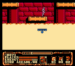 Even worse, though, are the controls. Your hero walks slowly and can barely jump, which leads to lots of annoying platforming deaths if your leaps aren’t pixel perfect. There are some other bonus items to find, like bombs and energy tanks – these can be used at any time to kill everything on the screen or regain some health, respectively, and they do help balance out some of the annoyance. Although there are only seven stages, there’s a password system that will help you get through the game quickly.