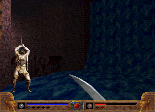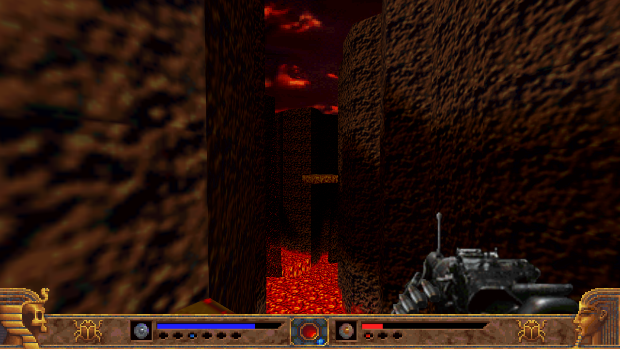 As part of the publishing agreement with Playmates Interactive, Lobotomy produced a console port of PowerSlave for the PlayStation and Saturn. However, it wasn’t possible to port the Build engine code over, so they had to remake the game completely. The end result wasn’t a straightforward albeit truncated conversion like the console ports for DOOM and its contemporaries, but an entirely new game that takes the original ideas and goes in a very different direction. So it’s worth examining this port as its own thing, especially since what it does is both fascinating and a massive improvement on the original.