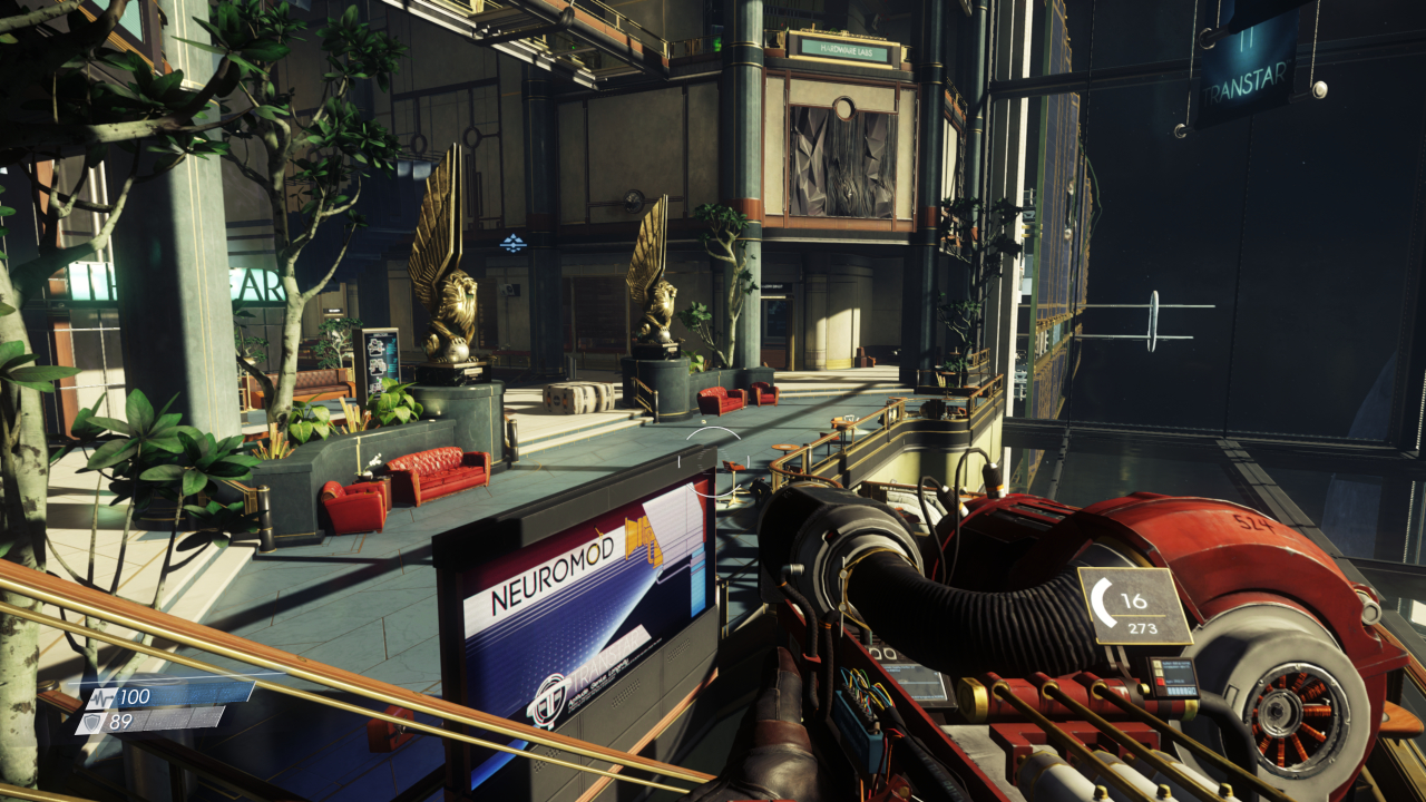 It’s an incredible opening, well paced, teaches you the basics, and gives you one hell of a revelation to take in while dozens more are being laid out in emails and audio logs. The game never has a moment matching this until the ending, which is also incredible and a rare example of an immersive sim having a good ending, but makes up for it with the great gameplay loops. You can collect a variety of tools to help you, including two regular guns in the pistol and shotgun, and an invaluable stun gun. You also get weird stuff like the gloo gun, which can be used to create platforms on walls and slow down enemies, a nerf gun with a surprising amount of uses, and your grenades/traps do wild stuff like turn any mater in the immediate area into material cubes you can use to 3D print stuff. Oh, and you also have the Q-beam, which microwaves things from the inside out to explode them, which while impracticable, is very, very fun, and even useful for mimic mobs as they pop fast and explode around their buddies. Most all of these can be upgraded with weapon upgrade kits, which you can use more of with the proper amount of neuromods invested in your skills.