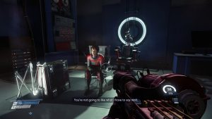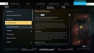 You play as Morgan Yu (man or woman, your choice), a high ranking scientist for the TranStar corporation and a member of the company’s owning family. You wake up in your apartment and head to work, as your brother Alex has you do some tests first. They act as a basic tutorial but are also…strange. The scientists observing and instructing you are reacting to whatever you do oddly, and then everything goes off the rails as you see a ink black tentacle monster turn into a coffee cup and suck the life from the lead scientist as gas comes out to knock everyone out.