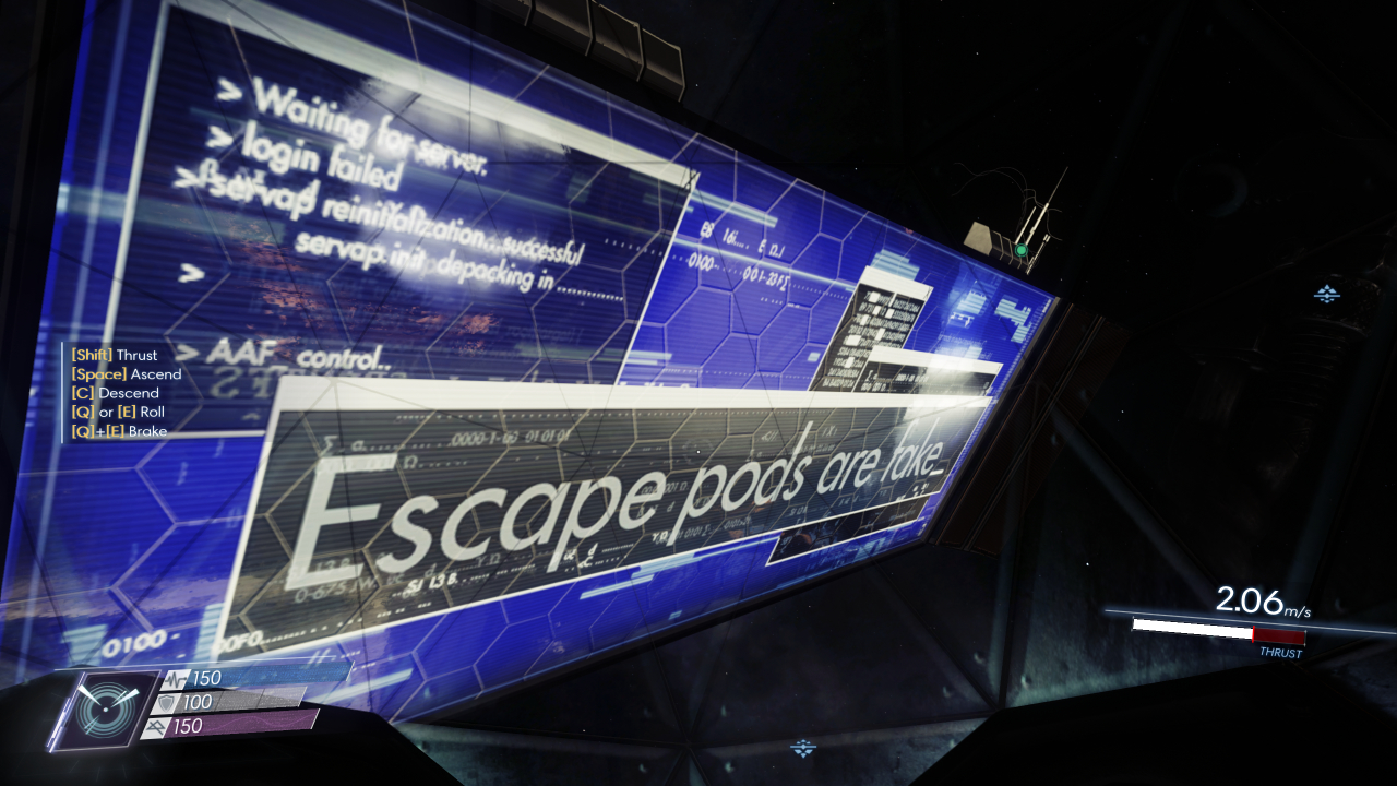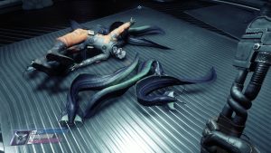 Then you wake up in your apartment. Everything seems the same, but items are moved around…and your email is warning you to get out – now. After getting a wrench from the now dead and disfigured repair woman in the hall, you break through a stuck glass door and find out you’ve been living in a simulation for a long time, and are not even on Earth. You are on a TranStar space station overrun with alien monsters called the typhon, and an artificial intelligence that you apparently made is trying to guide you to solving the problem. What happens from here is up to you.