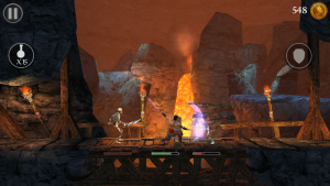 It’s a shame about the combat, cause the platforming is still pretty strong with some interesting challenges, especially towards the end where there are several tightly timed sequences. The graphics look OK for a typical smart phone game, but they lack the clarity of the pixel art, and everything on screen just tends to blend together due to the lack of distinct color contrasts. In between stages there are brief 3D cutscenes, but they’re mostly still images.
