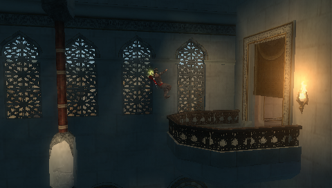 The PSP manifestation of The Forgotten Sands is neither the most innovative Prince of Persia nor the most substantial one. With 14 levels that can take anything between five and fifteen minutes to complete, plus three boss battles, it’s also a rather brisk experience. It is clear that this was made predominantly as a short distraction on the go. As such it is quite serviceable, although the mechanics can grow a bit tired towards the end, especially when the Prince needs to solve some laughable but overly long sand sprinkling puzzles without even any time pressure.